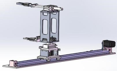 本站的功能是完成向各個(gè)工作單元輸送工件,系統(tǒng)分為雙機(jī)械手單元和直線(xiàn)位移位置精確控制單元兩部分,系統(tǒng)上電后,先執(zhí)行回原點(diǎn)操作,當(dāng)?shù)竭_(dá)原點(diǎn)位置后,若系統(tǒng)啟動(dòng),供料站物料臺(tái)檢測(cè)傳感器檢測(cè)到有工件時(shí),機(jī)械手整體先提升到位后手爪伸出到位后手爪夾緊,手爪夾緊到位手爪開(kāi)始縮會(huì)機(jī)械手整體下將到位后,伺服電機(jī)開(kāi)始工作按設(shè)定好的脈沖量到加工站。加工站到位后機(jī)械手整體提升,提升到位后手爪伸出伸出到位后機(jī)械手整體下降,下降到位后工件已放入加工站物料臺(tái)上,然后手爪松開(kāi),松開(kāi)到位后機(jī)械手回縮,等加工站加工完成后再將工件送到裝配站進(jìn)行大小料裝配,裝配完成后機(jī)械手抓取物料送到分揀站進(jìn)行分揀,這樣雙機(jī)械手的一個(gè)加工運(yùn)動(dòng)過(guò)程就完成了。只要料筒不缺料會(huì)持續(xù)以上過(guò)程。當(dāng)料筒出現(xiàn)缺料后,機(jī)器人會(huì)搬運(yùn)過(guò)來(lái)物料,機(jī)械手會(huì)運(yùn)行到取料位置抓取機(jī)器人上的小料,然后放入小料筒中,然后返回原點(diǎn),當(dāng)機(jī)器人再次搬運(yùn)過(guò)來(lái)物料,機(jī)械手會(huì)運(yùn)行到取料位置抓取機(jī)器人上的大料,然后放入大料筒中,這樣一個(gè)物料的拆分過(guò)程就完成了,直到把碼垛料臺(tái)上的物料全部拆分完成后為止。