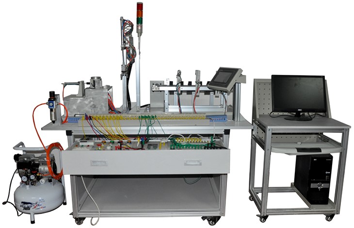本設(shè)備主要包括實(shí)訓(xùn)臺(tái)架、典型的機(jī)電一體化設(shè)備的機(jī)械部件、PLC模塊、變頻器模塊、按鈕模塊、電源模塊、模擬生產(chǎn)設(shè)備實(shí)訓(xùn)模塊、接線(xiàn)端子排和各種傳感器等組成。整體結(jié)構(gòu)采用開(kāi)放式和拆裝式,實(shí)訓(xùn)裝置用于機(jī)械部件組裝,可根據(jù)現(xiàn)有的機(jī)械部件組裝生產(chǎn)設(shè)備,也可添加機(jī)械部件組裝其他生產(chǎn)設(shè)備,使整個(gè)裝置能夠靈活的按教學(xué)或競(jìng)賽要求組裝具有生產(chǎn)功能的機(jī)電一體化設(shè)備。