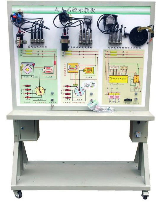 汽油發(fā)動機點火系統(tǒng)保養(yǎng)模塊教具架該設備采用全新 三種典型(即:觸點式點火系統(tǒng)、霍爾式電子點火系統(tǒng)、無分電器分組點火系統(tǒng))的發(fā)動機點火系統(tǒng)的真實部件,充分展示發(fā)動機點火系統(tǒng)的組成結構和工作過程。