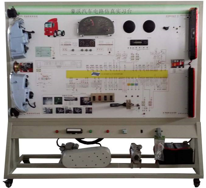 豪沃汽車電路仿真實習(xí)臺采用全新原整車電器實物為基礎(chǔ),充分展示汽車儀表系統(tǒng)、燈光系統(tǒng)、雨刮系統(tǒng)、喇叭系統(tǒng)、發(fā)動機(jī)電器系統(tǒng)、起動系統(tǒng)和充電系統(tǒng)等汽車電器各系統(tǒng)的組成結(jié)構(gòu)和工作過程。