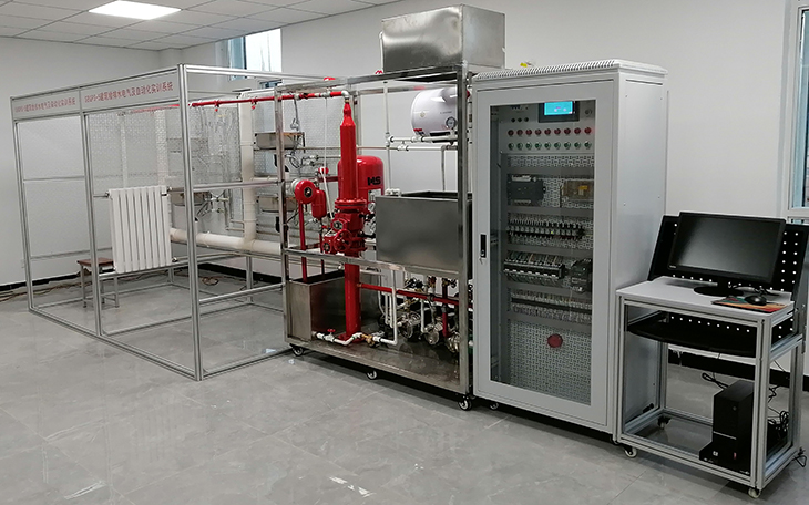 2、消防給水系統(tǒng):主要有給水箱、噴淋泵、穩(wěn)壓罐、濕式報警閥、壓力開關(guān)、水流指示器、消防給水管道、閉式噴淋頭等組成。管路采用鍍鋅管進(jìn)行設(shè)計,可進(jìn)行鍍鋅管的切割、套絲、安裝和通水試驗操作,通過控制系統(tǒng)可實現(xiàn)噴淋滅火功能。