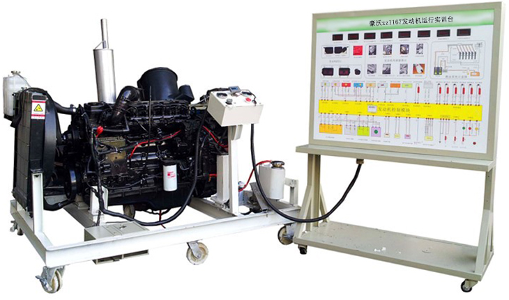 豪沃zz1167發(fā)動(dòng)機(jī)運(yùn)行實(shí)訓(xùn)系統(tǒng)以翻新 豪沃zz1167汽車國(guó)三原廠柴油發(fā)動(dòng)機(jī)總成。及運(yùn)行附件為主體部件,發(fā)動(dòng)機(jī)可起動(dòng)運(yùn)行,進(jìn)行起動(dòng)、加速、減速、故障檢測(cè)與診斷、故障模擬與排除等工況的實(shí)際操作,真實(shí)展示柴油發(fā)動(dòng)機(jī)結(jié)構(gòu)與原理及工作過(guò)程。